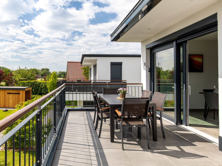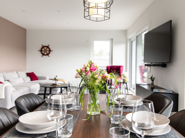 8-Zimmer-Haus 192 m2 auf 2 Stockwerken. Geräumig und hell, komfortabel und modern eingerichtet: grosses Wohn-/Esszimmer mit Sat-TV (Flachbildschirm). Ausgang zum Garten. 2 Zimmer, jedes Zimmer mit 1 Doppelbett (180 cm, Länge 200 cm), Sat-TV (Flachbildschirm). 1 Zimmer mit 1 x 2 Etagenbetten (90 cm, Länge 200 cm). Offene Küche (Backofen, Geschirrspüler, 4 Glaskeramikplatten, Toaster, Wasserkocher, Mikrowelle, elektrische Kaffeemaschine, Kochinsel). Sep. WC, Bad/Dusche/WC, Doppelwaschbecken, Sauna. G-Heizung. Obergeschoss: grosses Wohn-/Esszimmer mit Sat-TV (Flachbildschirm). Ausgang zum Balkon. 2 Zimmer, jedes Zimmer mit 1 Doppelbett (180 cm, Länge 200 cm), Sat-TV (Flachbildschirm). 1 Zimmer mit 1 Bett (90 cm, Länge 200 cm). Offene Küche (Backofen, Geschirrspüler, 4 Glaskeramikplatten, Toaster, Wasserkocher, Mikrowelle, elektrische Kaffeemaschine, Kochinsel). Sep. WC, Bad/Dusche/WC, Doppelwaschbecken, Sauna. Grosser Balkon 30 m2, grosse Terrasse 30 m2. Terrassenmöbel, Balkonmöbel. Zur Verfügung: Waschmaschine, Kinderhochstuhl, Babybett. Internet (Wireless LAN, gratis). Bitte beachten: Nichtraucher-Unterkunft. Buchungen sind nur zu touristischen Zwecken erlaubt.