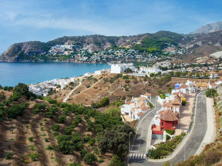 La Herradura: Modernes, schönes, komfortables Doppelhaus "Bahia", auf 3 Stockwerken. Ruhige, sonnige Lage im Villenviertel, 700 m vom Meer, 700 m vom Strand, Richtung Süden. Zur Mitbenutzung: Liegewiese, Schwimmbad eckig (16 x 7 m, 100 - 175 cm tief, saisonale Verfügbarkeit: 01.Jan. - 31.Dez.). WC im Poolbereich, Aussendusche, Parkplatz Nr. 3. Einkaufsgeschäft 700 m, Supermarkt, Restaurant, Bar, Bäckerei, Café, Bushaltestelle 2 km, Bahnstation 60 km, Tauchzentrum 2 km. Sporthafen 2 km, Jacht-Hafen 2 km, Golfplatz (18 Loch) 13 km, Surfschule 55 km, Segelschule 2 km. Nahe gelegene Sehenswürdigkeiten: Almuñecar, Salobreña, Las Alpujarras, Valle de Lecrin, Nerja, Frigiliana. Bekannte Skigebiete sind gut erreichbar: Sierra Nevada. Wandergebiete: Sierra Tejeda, Sierra Almijara. Bitte beachten: kein Fahrstuhl vorhanden. Der Besitzer akzeptiert keine Jugendgruppen. Be- und Entladen am Ferienhaus möglich. Ferienwohnung Ref. ES5400.601.1 befindet sich auf dem gleichen Grundstück.