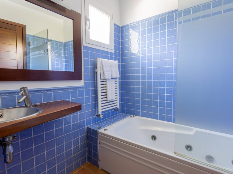 Son Bou: Schöne, komfortable, luxuriöse Villa "Villas Finesse Type 1", umgeben von Bäumen. Am Ortsrand Son Bou, ruhige, sonnige Lage auf einem Hügel, 2 km vom Meer. Zur Alleinbenutzung: Grundstück, Garten, Schwimmbad (4 x 10 m, saisonale Verfügbarkeit: 30.Apr. - 24.Okt.). Aussendusche, Sitzplatz, Terrasse. Im Hause: Internetzugang, Wireless LAN, Klimaanlage, Waschmaschine. Parkplatz auf dem Grundstück. Einkaufsgeschäft 2 km, Lebensmittelgeschäft 2 km, Supermarkt 1 km, Restaurant 200 m, Bushaltestelle "Son Bou" 450 m, Sandstrand 2 km. Golfplatz (18 Loch) 20 km, Tennis 1.9 km, Reitstall 1 km, Kinderspielplatz 300 m. Bitte beachten: Fahrzeug empfohlen. Geeignet für Familien, geeignet für Senioren auf Anfrage. Objekt geeignet für 6 Erwachsene Jugendgruppen nur auf Anfrage. Be- und Entladen am Ferienhaus möglich. Flugplatz 20 km vom Haus.