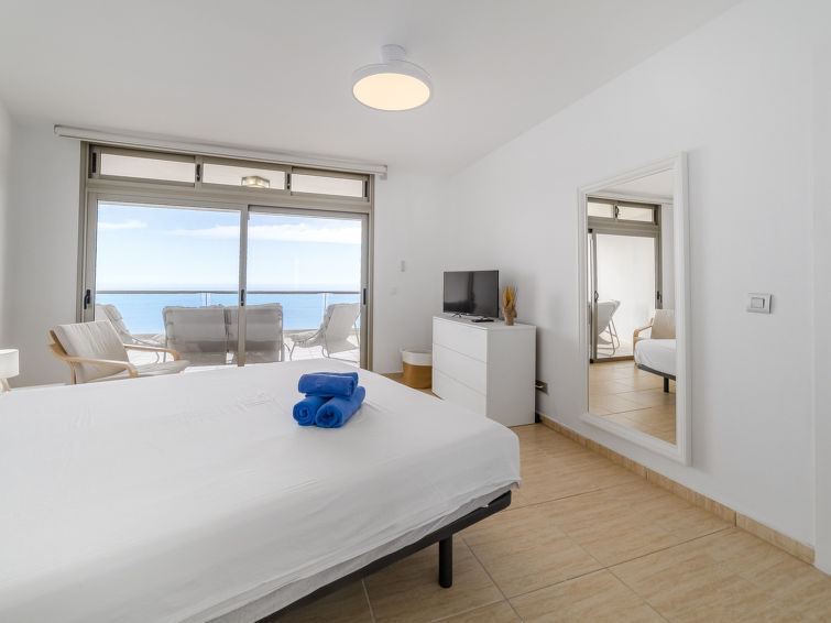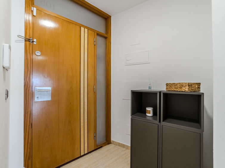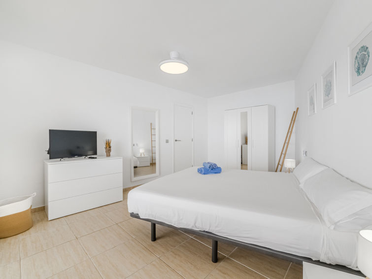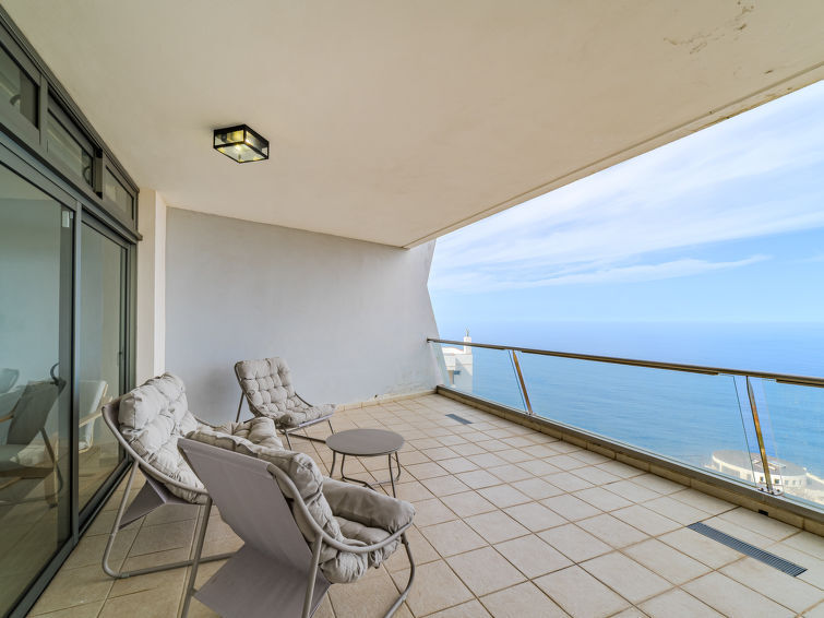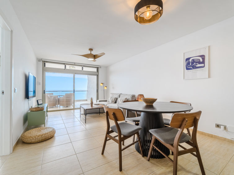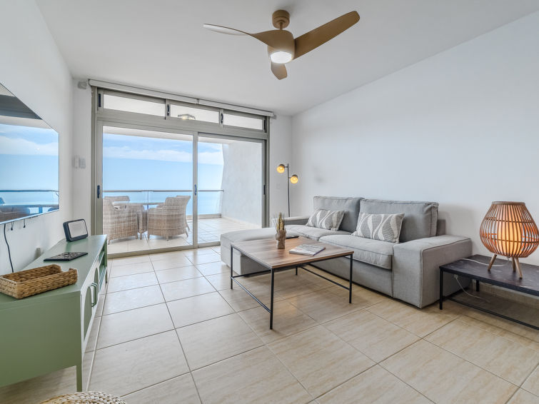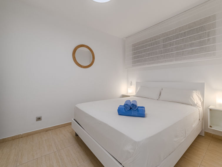 "Punta del Sol", 3-Zimmer-Wohnung 110 m2 im 1. Stock. Objekt geeignet für 4 Erwachsene. Geräumig und hell, zweckmässig und komfortabel eingerichtet: Wohn-/Esszimmer mit Digital-TV und Ventilator. Ausgang zum Balkon. 1 Zimmer mit 1 franz. Bett (1 x 150 cm, Länge 190 cm), Digital-TV und Ventilator. 1 Zimmer mit 1 Doppelbett (1 x 150 cm, Länge 190 cm), Ventilator. Küche (Backofen, 4 Glaskeramikplatten, Toaster, Wasserkocher, Mikrowelle, elektrische Kaffeemaschine). 2 Duschen/WC. Keine Heizmöglichkeit. Grosser Balkon. Terrassenmöbel. Sehr schöne Sicht auf das Meer. Zur Verfügung: Waschmaschine, Bügeleisen, Haartrockner. Internet (WLAN, gratis). Parkplatz Nr. 13 (überdacht). Bitte beachten: geeignet für Familien. Nichtraucher-Unterkunft. Feuerlöscher. VV-38-4-0113161