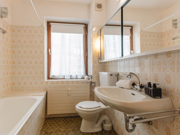 "Bella Vista", appartement 2-kamers 50 m2 op de 2e verdieping, op het zuiden gelegen. Gedeeltelijk gerenoveerd in 2019, eenvoudig en gezellig ingericht: 1 2-pers. kamer. Uitgang naar het balkon. Woon-/slaapkamer met 1 2-pers divanbed, eettafel en Sat-TV. Uitgang naar het balkon. Keuken in de hal (4-pits kookplaat, oven, broodrooster, waterkoker, diepvriezer, elektrische koffiemachine). Bad/WC. Balkon 9 m2, op het zuiden gelegen. Mooi uitzicht op de bergen en de tuin. 1 huisdier/hond toegestaan. 50402-000676-2020