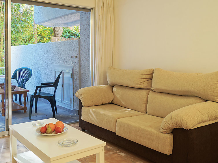"Jardines del Mar", appartement 2-kamers 60 m2, souterrain. Het objekt is geschikt voor 2 volwassenen + 1 kinderen. Eenvoudig en comfortabel ingericht: woon-/eetkamer met Digitale TV, air-conditioning en heteluchtverwarming. Uitgang naar het terras. 1 2-pers. kamer met 1 2-pers bed (150 cm, lengte 190 cm). Uitgang naar het terras. Kleine keuken (2-pits kookplaat, oven, magnetron, diepvriezer) met doorgeefluik. Bad/bidet/WC. Terras 15 m2, overdekt. Terrasmeubelen, ligstoelen (2). Uitzicht op de tuin. Ter beschikking: wasmachine. Internet (WiFi, gratis). Parkeerplaats. Telefoon voor inkomende gesprekken. VUT/MA/08877