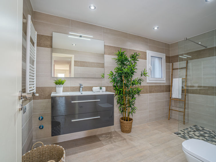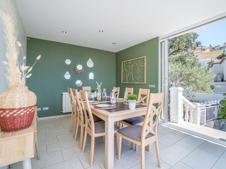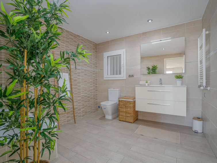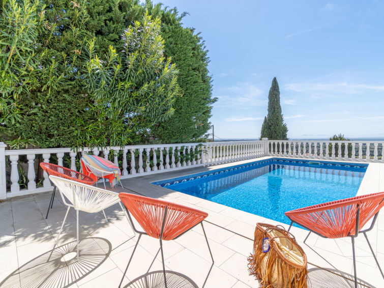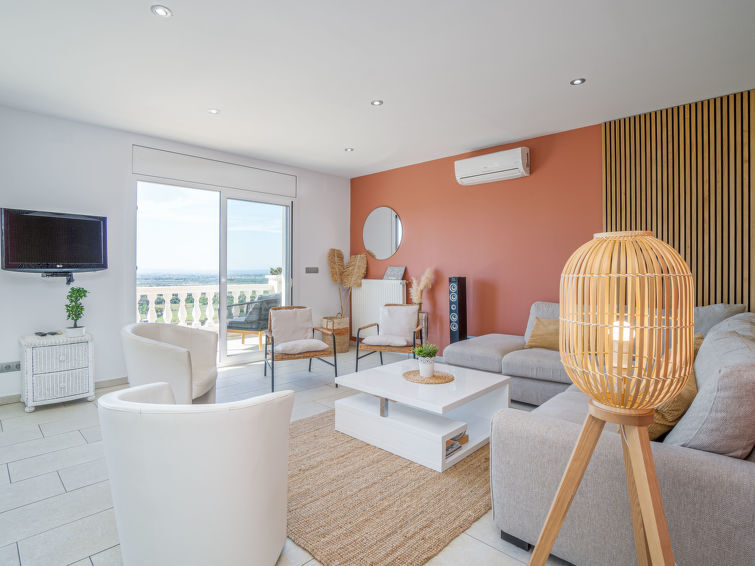 Groot, moderne, gezellige villa "Panorama", van 2 verdiepingen. In de plaats Palau Savardera, 8 km van het centrum van Roses, rustige, zonnige ligging villa wijk, gebied met weinig verkeer, 7 km van zee, 7 km van het strand, op het zuiden. Voor alleengebruik: groot tuin op verschillende niveaus (omheind) met planten en bomen, openluchtzwembad hoekig (8 x 4 m, 100 - 200 cm diepte, seizoensgebonden beschikbaarheid: 01.Mei. - 30.Okt.) met trap. Terras, tuinmeubelen, barbecue, parkeerplaats (voor 3 auto's) op het terrein. Levensmiddelenwinkel 3 km, supermarkt 3 km, restaurant, bar, café 500 m, bushalte "Moventis estació bus Roses" 8.8 km, treinstation "Estación Tren Vilajuiga" 6 km, zandstrand "Roses" 9 km. Jachthaven 9 km, golfterrein (18 holes) 12 km, zeilschool 9 km, tennis 3 km, manege 5 km. Attracties in de buurt: Zona de padel con bar y restaurante 500 m, Parque Acuático Roses Aquabrava 3 km, Túnel del viento y Skydive Empuriabrava 12 km, Cadaqués 17 km, Museo Dalí Figueres 22 km, Castillo y festival de Perelada 15 km. Auto noodzakelijk. Groepen jongeren uitsluitend op aanvraag. De sleuteloverdracht vindt plaats bij het agentschap Interhome in Empuriabrava.