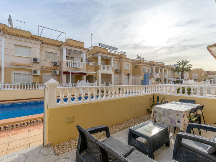 Klein, comfortabel rijtjeshuis "Tista". In de plaats Los Alcázares, rustige, zonnige ligging, 500 m van zee, van het strand. Voor medegebruik: openluchtzwembad (seizoensgebonden beschikbaarheid: 01.Jan. - 31.Dec.). Kinderzwembad, buitendouche, openbare parkeerplaatsen in de straat. Levensmiddelenwinkel, supermarkt, restaurant, bushalte 500 m, zandstrand. Golfterrein (18 holes) 3 km, kinderspeelplaats 50 m.