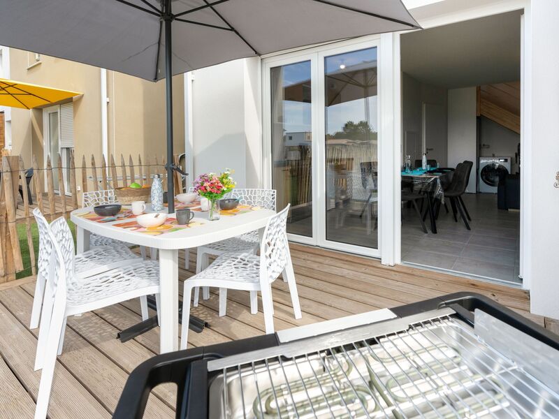"Soleil Couchant B03", maisonette 3-kamers 54 m2, op de begane grond. Comfortabel en modern ingericht: woonkamer met TV (Flatscreen TV). Woonkeuken (oven, afwasmachine, 1 keramische glas kookplaat, 2 kookpitten (vlammen), broodrooster, waterkoker, magnetron, elektrische koffiemachine) met eettafel, air-conditioning, boiler en elektrische rolluiken. Uitgang naar het terras. Douche/WC. Air-conditioning. Bovenverdieping: 1 kamer met 1 2-pers bed (1 x 140 cm, lengte 190 cm). 1 kamer met 1 x 1 stapelbedden (90 cm, lengte 190 cm), 1 2-pers bed (1 x 140 cm, lengte 190 cm). Aparte WC. Terras 10 m2, op het zuiden gelegen en op het westen gelegen. Terrasmeubelen. Ter beschikking: wasmachine, strijkijzer. Internet (Internet (WiFi), extra). Parkeerplaats nr. 26. Niet rokers woning. 1 klein huisdier/hond toegestaan. Rookmelders. Aanbod door een particulier volgens art. 155, IV van CGI.