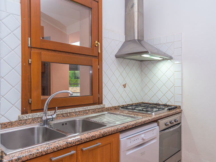 "Rei Sole (REI305)", huis 5-kamers 120 m2. Ruim, mooi en smaakvol ingericht: woon-/slaapkamer met open haard, eettafel en Sat-TV. Uitgang naar het terras. 1 kamer met 1 2-pers bed en douche/WC. 2 kamers, elke kamer heeft 1 2-pers bed. 1 kamer met 1 bed. Open keuken (1 kookplaat, oven, afwasmachine, 3 kookpitten (vlammen), magnetron). 2 douche/WC's. Elektrische verwarming, air-conditioning. Terras overdekt. Terrasmeubelen, barbecue, ligstoelen (2). Ter beschikking: wasmachine, kinderbed (extra). Internet (Internet (WiFi), extra). IT111042B4000F3200