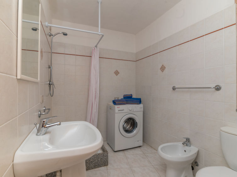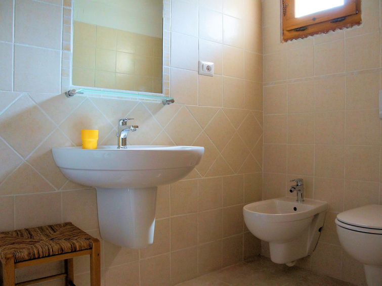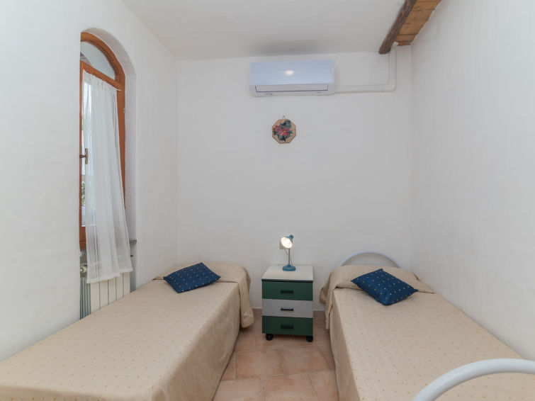 "Milli", huis 5-kamers op 2 verdiepingen. Doelmatig en comfortabel ingericht: woon-/eetkamer met Sat-TV en radio. Uitgang naar het terras. 1 2-pers. kamer. 1 kamer met 2 bedden. Open keuken (4-pits kookplaat, oven, diepvriezer) met eettafel. Douche/bidet/WC. Souterrain: 1 2-pers. kamer. 1 kamer met 1 x 2 stapelbedden. Douche/bidet/WC. Geen verwarmingsmogelijkheid. Terrasmeubelen. Maximaal 1 huisdier/hond toegestaan. IT090079B4000E2224